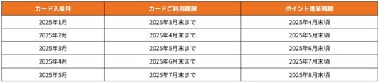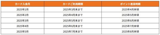 カード入会月に応じて、カードご利用期間、ご利用期間終了月+1ヵ月後の月末頃に進呈いたします。