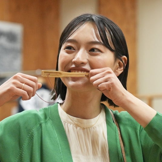 ムックリの持ち方、鳴らし方、音の変え方を体験