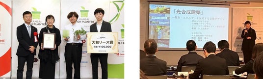 摂南大学(学長:久保康之)住環境デザイン学科の 川上 比奈子教授、生命科学科 松尾 康光教授、瀬溝 人生助教は、科学技術と情熱をもって関西から世界を変えようとするチームを発掘・育成することを目的に開催された「第2回関西テックプラングランプリ」に参加。植物の光合成を利用した光バイオ燃料電池を建築素材に一体化させ、水素エネルギーと酸素を作り出す「光合成建築」についてプレゼンテーションを行いました。その結果、会場投票1位を獲得し、企業賞である大和リース賞を受賞しました。