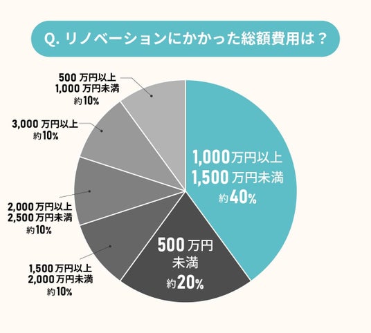 最多は「500万円以上1,000万円未満」の約40%でした。次いで、「500万円未満」が約20%と、部分的なリノベーションをした人が多いといえそうです。