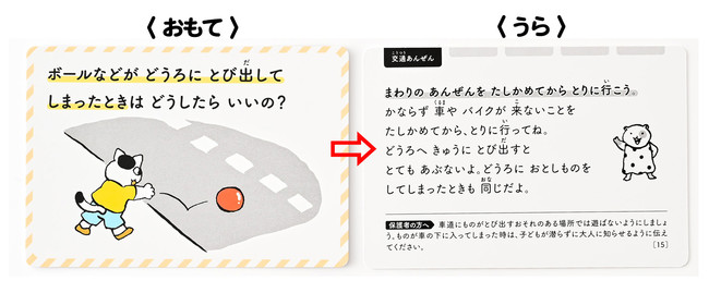 1、カードのおもて面を読み、気をつけることや、とるべき行動をお子様にたずねます。