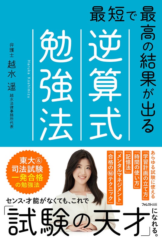 フォレスト出版株式会社(所在地:東京都新宿区、代表取締役:太田 宏)は、2025年1月9日(木)より『最短で最高の結果が出る逆算式勉強法』(越水遥・著)を全国書店およびネット書店で順次発売します。本書は、東大&司法試験を現役一発合格した著者が、今までありそうでなかった、誰でも実践できる「絶対合格にコミットした最強の勉強法」を解説した一冊です。