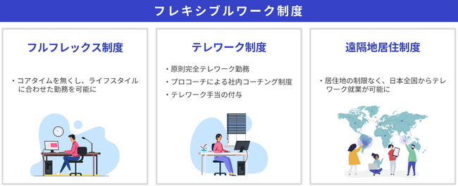 以前よりフルリモート、フルフレックス制度により柔軟な働き方が可能となっていましたが、遠隔地居住制度を導入することで、従業員個々の状況に合わせた働き方の選択肢がさらに広がりました。