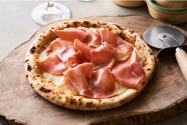 特長:自家製酵母を使用して発酵させた自慢の生地にミックスチーズとイタリア産モッツァレラチーズ、世界三大生ハムの一つのハモン・セラーノをトッピング。ご自宅でのランチ・ディナーにはもちろん、急な来客時のおもてなしやパーティー等、様々なシーンに対応できる頼もしい味方になるはず。ハレの日におすすめしたいリッチな味わいです。