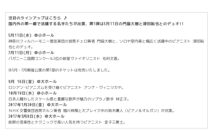 コンサートは全て平日のお昼。料金もすべて一律です♪