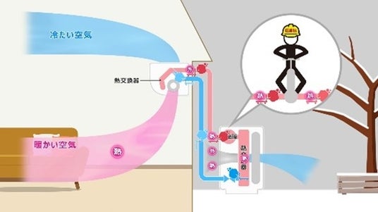 一般的なエアコンは、屋外の空気中から集めた熱を室内に送り込み、室内の熱を増やすことで部屋を暖かくしています。空気中の熱を集めるのが室外機で、室外機から送られてきた熱を室内に放出するのが室内機です。