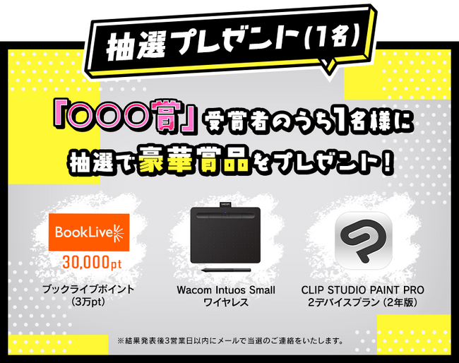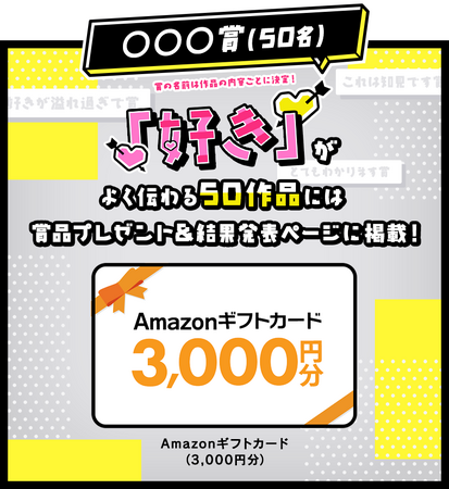 賞の内容は、結果発表までのお楽しみ!?受賞者50名のうち1名に抽選で豪華賞品プレゼント!
