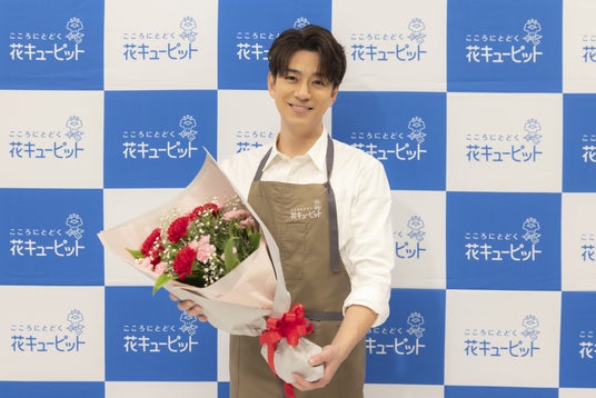 本キャンペーンは、花キューピットで母の日のお花を購入しご応募いただいた方のうち1名様に「三浦翔平さんからお花をお渡し」のほか、直筆サイン入り母の日ポスターやチェキプリントをプレゼントする企画です。