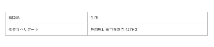 ※ 修善時ヘリポートは修善寺虹の郷内にあります。
