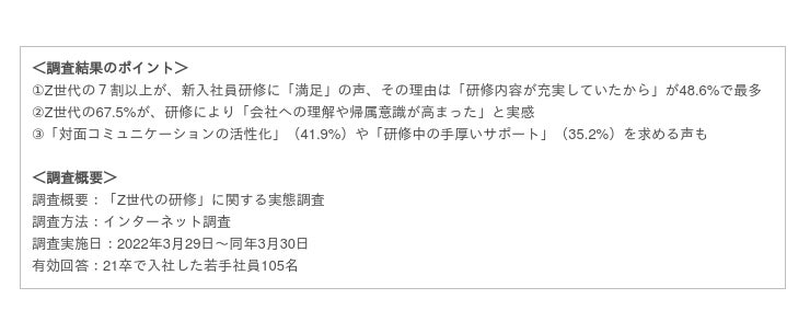今回は、21卒で入社した若手社員105名を対象に、「Z世代の研修」に関する実態調査を行いました。
