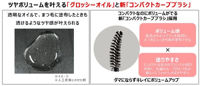 さらに、コンパクトなのにボリューム感を与える新「コンパクトカールブラシ」を採用したことで、細いまつ毛までしっかり液を塗布しながら、キレイにさばけるので、ダマにならずにボリュームアップします。(*エテュセ内)