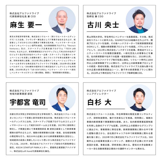 株式会社アルファドライブ(代表取締役社長 兼 CEO 麻生要一、以下、AlphaDrive)は、千葉県より「令和6年度オープンイノベーション促進事業 業務委託」を受託し、千葉県内の中小企業の外部連携を支援する「オープンイノベーションCHIBA 2024」 プロジェクトを開始しました。