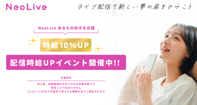 2022年12月23日から2023年2月末までの期間に配信で得られる、全ての収益が10%アップするイベントを実施します。ご応募お待ちしています。