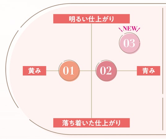 01 コーラルメモリー、02 レイジーローズの2色展開で、どちらのカラーもパーソナルカラーを問わずおすすめです。