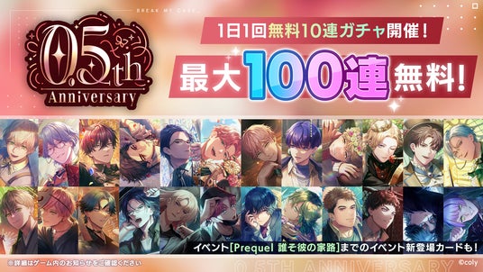 0.5周年を記念して最大100連無料となる毎日無料10連ガチャを開催中です。