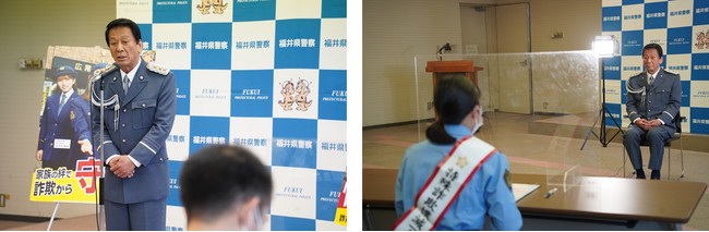 はじめに、福井県警察本部を訪問した杉対策監は記者会見において「特殊詐欺は今なお増加・減少を繰り返しています。これを減少させるため、全国47都道府県の警察本部を訪れて特殊詐欺防止のため対策を考え、実施しています。福井県民はとてものどかで純朴なイメージがあり、特殊詐欺被害に遭わないよう、より強化した対策が必要なのではないかと思っています。その一つとして、家族から高齢者への強い呼びかけが必要です。しかし、どれだけ気をつけてと呼びかけても、詐欺の電話だという事を判断できず、相手の話を聞いてしまい騙されてしまうことがあります。高齢者自身に対応を任せないために、引き続き呼びかけを徹底するとともに、防犯機能付き電話機等を設置し、家族が電話の使い方を教えてあげることが必要です。」と県民性を踏まえた対策について述べました。