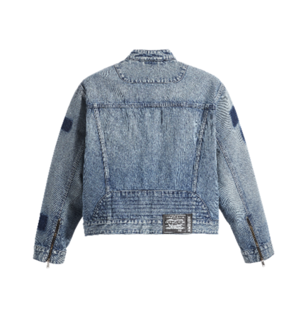 クラシックなカフェレーサーのMotoジャケットからインスパイアされたLevi's(R) x AMBUSH(R) バイカージャケットは、ミッドインディゴウォッシュで、スナップボタンのラッチ付きスタンドカラーに2つの胸ポケット、2つのサイドポケットがつきます。チャンキーなAMBUSHジッパープルを備えた8番ジッパーフロントが特徴です。また、フロントには、胸と袖にシャドーパッチを施し、洗い加工後にパッチを外すことでパッチのアタリを表現しています。バックスタイルには、アコーディオンディテールのウエストパネルと、Levi's(R)ツーホースとAMBUSH(R)のロゴが入ったブラックのスペシャルエディションバックパッチがあしらわれています。