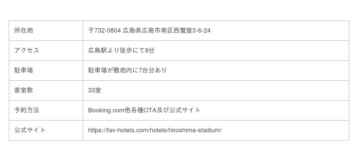 霞ヶ関キャピタル株式会社(本社:東京都千代田区、代表取締役:河本幸士郎、以下「当社」)は、当社の100%子会社である霞ヶ関パートナーズ株式会社が展開するFAV HOTELブランド(以下、「当ホテルブランド」)5施設目となる「FAV HOTEL 広島スタジアム」(広島県広島市)を2022年8月下旬に開業することをお知らせいたします。