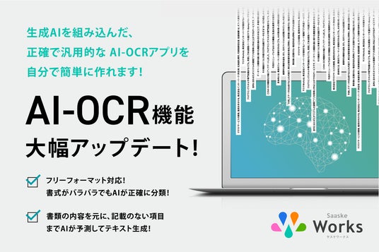 クラウドサービスの開発、販売を手がける、株式会社インターパーク(所在地:北海道札幌市、代表取締役社長:舩越裕勝)は、オフィス業務の効率化に貢献するノーコード業務アプリ作成ツール『サスケWorks 』のAI-OCR機能において、生成AIとの連携を強化し画期的な機能追加を実施したことをお知らせいたします。