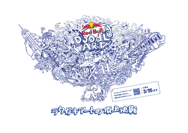 参加方法は『Red Bull Doodle Art』公式応募用紙をダウンロード。その後は、黒色もしくは青色のペンで自分だけの「ラクガキアート」を完成させて下さい。作品が完成したらオフィシャルサイトの手順に沿って作品を提出。応募締め切りは【3月26日(日)23:59】まで。