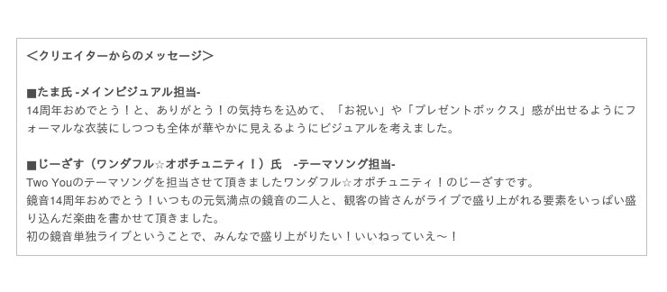 ★イベント推奨ハッシュタグ:#TwoYou #鏡音バースデーライブ