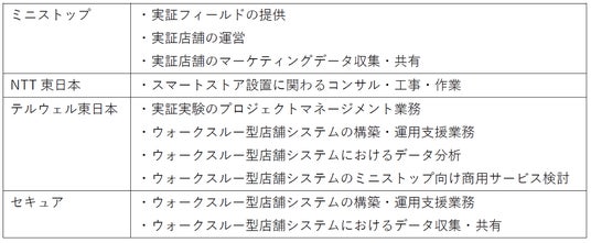 本実証では、4社が連携してミニストップ ポケットのウォークスルー型店舗の構築および運用を行