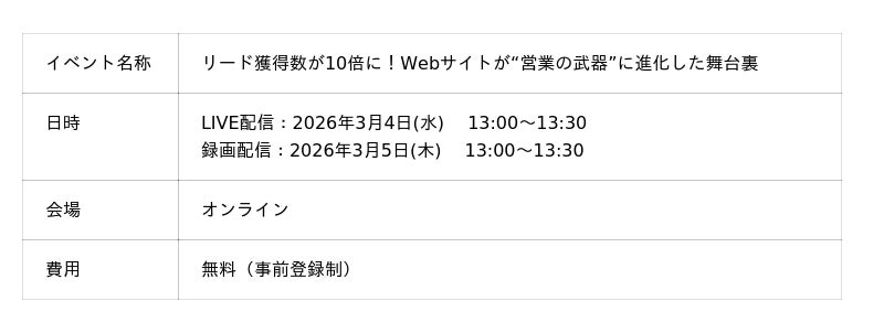 Webサイトが“営業の武器”に進化した舞台裏」の開催いたします。