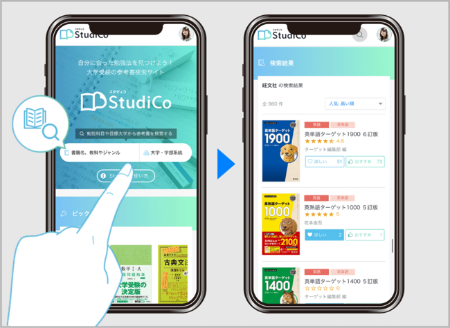 「StudiCo」は、9000冊以上の参考書から、科目・ジャンル・目標大学といった切り口を通して自分にぴったりの1冊を見つけ、効果的な勉強法を知ってもらうための大学受験生応援サイトです。