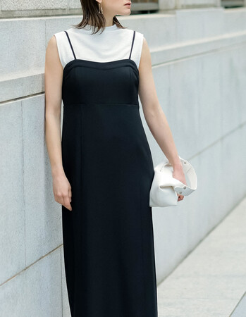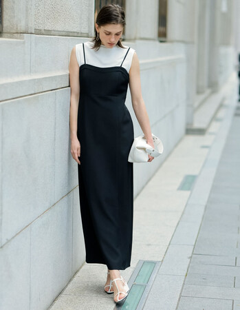 [低身長/高身長サイズ有]ドライタッチビスチェライクIラインキャミワンピース