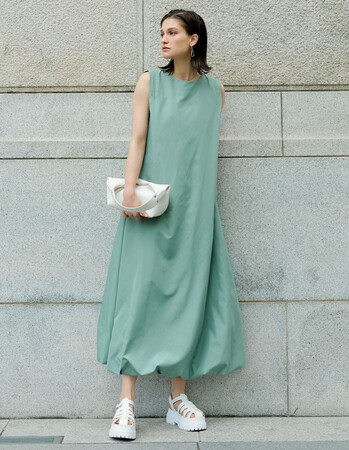 [身長サイズ有]タフタバルーンノースリーブワンピース