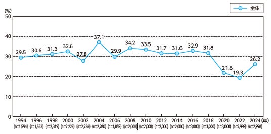 注)2014年までは20歳以上、2016年以降は18歳以上を調査対象としている。