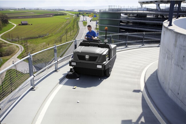 ケルヒャーの業務用スイーパーにより広面積を短時間で効率的に清掃