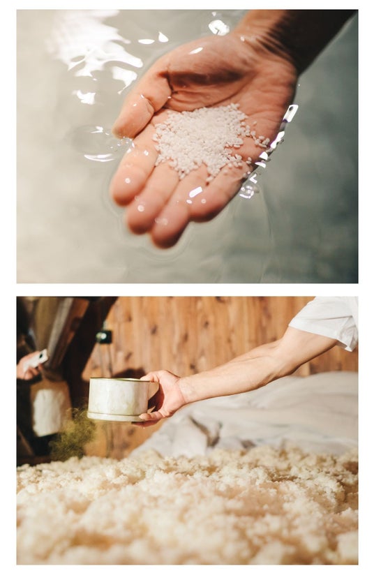 使用する酒粕エキス*¹は、阿蘇の酒米を中心に精米し、阿蘇の湧水と熊本酵母で醸造。熊本県・河津酒造では伝統的な「ふなしぼり製法」で丁寧に抽出したものを配合しています。