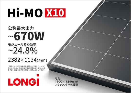今回の主役は、新製品「Hi-MO X10」です。N型BC(バックコンタクト)技術「HPBC 2.0」などを採用し、TOPCon製品を凌駕する高効率・高出力を実現しました。長期信頼性やリニア出力保証、安全性に加え、高温時や低照度条件下での優れた実発電量、そしてシンプルで美しい外観も特長です。 N型BC製品の本格的な量産と普及を行い、業界を変えるのはLONGiです。その瞬間を、ぜひその目でお確かめください。