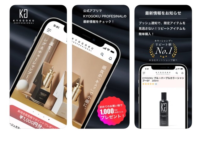 今までKYOGOKU PROFESSIONALのサイトでしか購入できなかった、公式限定アイテムがスマホで手軽に購入できるほか、KYOGOKU PROFESSIONAL内の読み物がそのまま読めたり、アイテムのレビューがみれたり、と便利な機能が満載です。