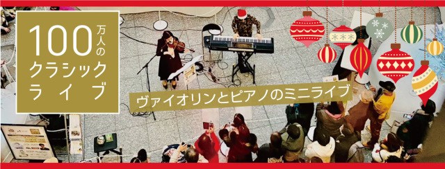 多くの人々が集まるホリデーシーズンの商業施設内でコンサートを行うことにより、“心がおどる”生の音色にときめく「場」の創出、感動の分かち合い、笑顔の人の輪を広げていき、音楽活動を通した社会への貢献を目指しています。当日はヴァイオリンとピアノによるクラシックライブを奏者による解説つきでお届けいたします。