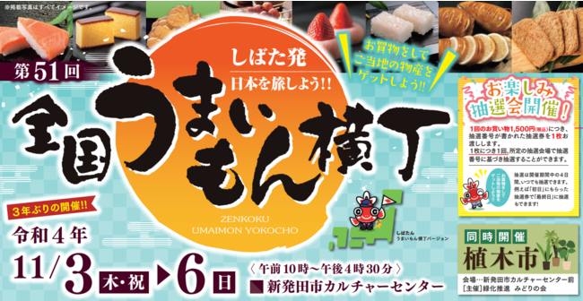 新潟県新発田市の秋の風物詩である「全国うまいもん横丁」を開催いたします。今回の開催で51回を数えるイベントです。