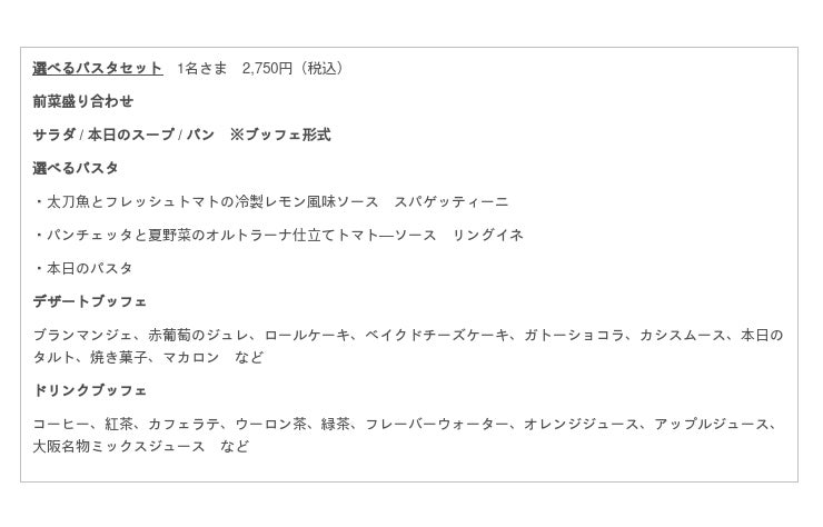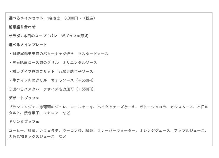 場 所:クロスホテル大阪3階レストラン「TERRACE & DINING ZERO」