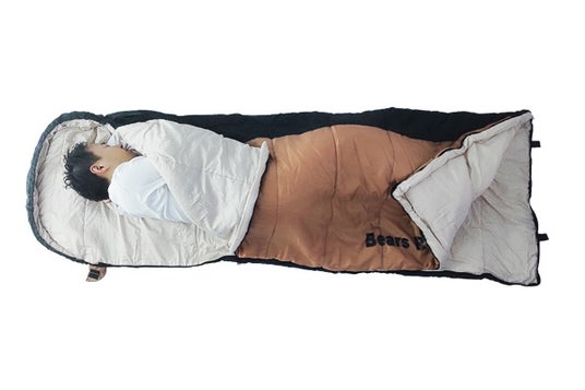 布団のようにゆったりと眠れるこのクラスの寝袋としては横幅が広く、圧迫感がないので布団のようにゆったりとお使いいただけます。