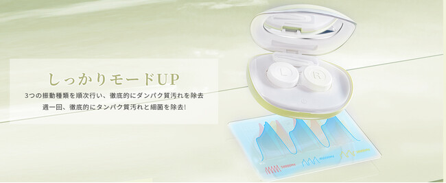 ↑【しっかりモードUP】3つの振動種類を順次行い、徹底的にダンパク質汚れを除去。週一回、徹底的にタンパク質汚れと細菌を除去!