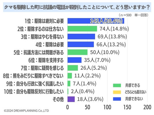 3位は「共感できない。駆除はやむを得ない」13.8%