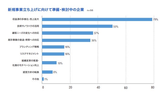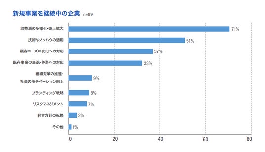 7割以上が「収益源の多様化・売上拡大」を目的として新規事業に挑戦