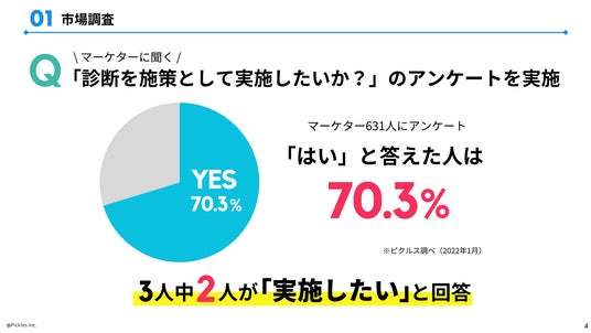 株式会社ピクルス(本社:東京都品川区、代表取締役社長:田中 稔、以下「ピクルス」)は、採用・転職業界における課題を、診断コンテンツによって解決した成功事例資料を公開しました。本資料は、会員登録促進、サイト流入増加、広告CPA改善といった課題別に、成功事例を詳しく解説しています。