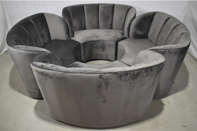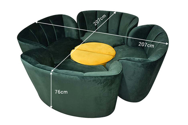 花という自然界で最も美しいものをモチーフにフルデザインでつくられた、ソファFLOWER。その花びらひとつひとつを1人掛けソファとし、中心の花芯のスツールをサイドテーブルまたはオットマンとして、フレキシブルに使えるようにデザインされたモジュールソファが誕生しました。1人掛けソファ4台、スツール2台がセットになった大型のソファです。フルオリジナルデザインのソファFLOWERは現在特許出願中です。