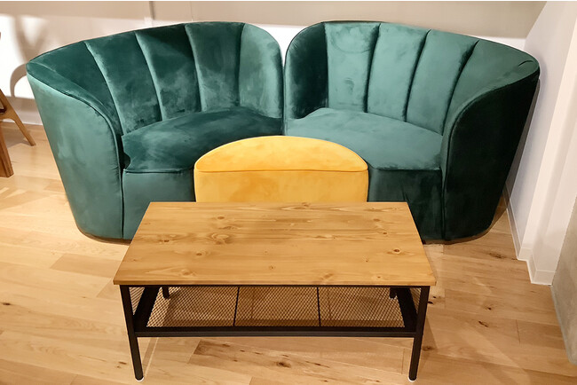 オットマンを付けてカウチの代わりに。2つ並べてオットマン付けると、前面がフラットになります。