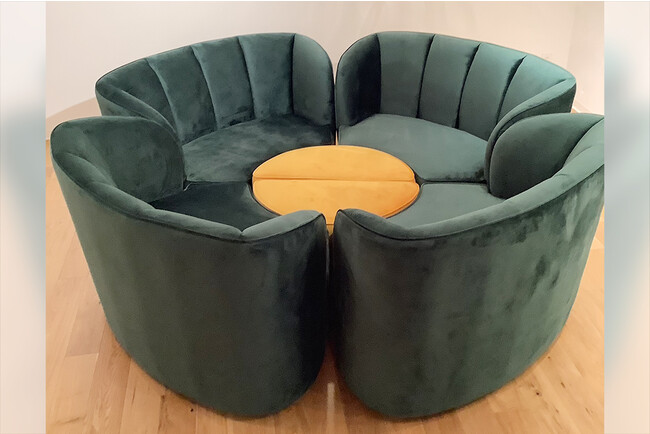 花芯(スツール)は、完全な円を構成するため、花びらの内側も円になるようつくられています。また、モジュールソファの正円のスツールを1つではなく分割式にすることで、モジュールソファとしての可能性が広げられています。