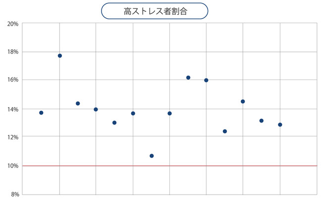 多くの業界で新型コロナ感染症拡大以前から高ストレス者割合が10%を超えるケースは見られていましたが、全業界で10%超を確認したのは今回が初めてとなります。