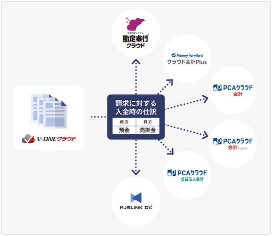 <V-ONEクラウドと主要会計システムの消込仕訳API連携一覧>