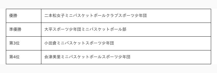今大会では、福島県内の各地区(県中、県南、会津、いわき、相双、県北)の予選会をもとに参加チームが決定。勝ち上がった男女各24チームが予選リーグでぶつかり、トーナメント戦を経て男子の部は「ふねひきバスケットボールクラブ」、女子の部は「二本松女子ミニバスケットボールクラブスポーツ少年団」がそれぞれ優勝に輝きました。