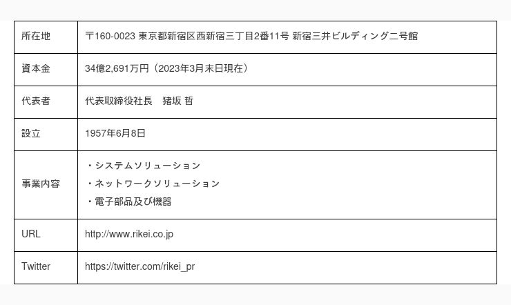 株式会社理経は、IT及びエレクトロニクス業界のソリューションベンダーとして1957年に設立以来、システムからネットワーク、VR/ARコンテンツ、電子材料・電子機器までさまざまなソリューションを提供しています。国内外の最先端技術や先進的な製品を活用したソリューションを提案し、お客様の業務の効率化、収益の改善などビジネスの発展に寄与します。